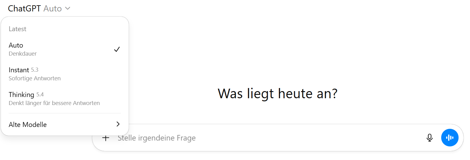 GPT-5.3 oder GPT-5.4? Auto, Instant oder Thinking? Haiku, Sonnet oder Opus? Was die Modellauswahl in ChatGPT, Claude und Gemini bedeutet.